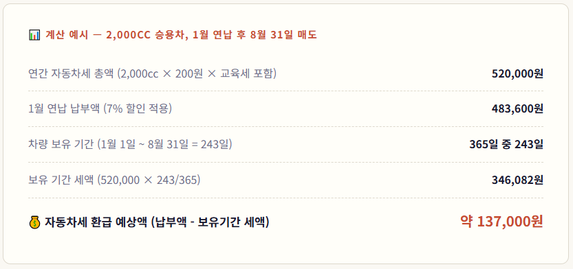 6. 자동차세 연납 환급 계산 예시